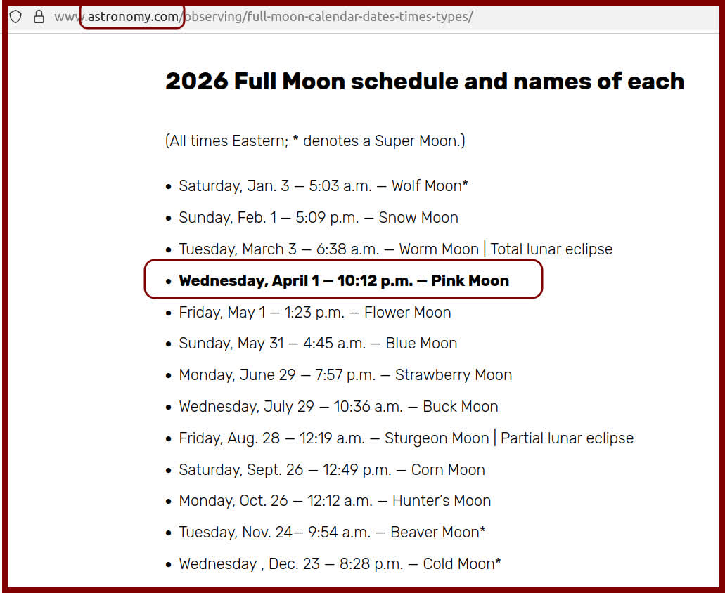 When fact-checking with AI, I was disappointed by how poor AI can be at astronomy. It tried arguing with me that this launch did not happen during a full moon, nor was it flying or on its mission to the moon. But I saw the full moon with my own eyes from Earth and other sources confirm the launch date was the day of the full moon called the Pink Moon.