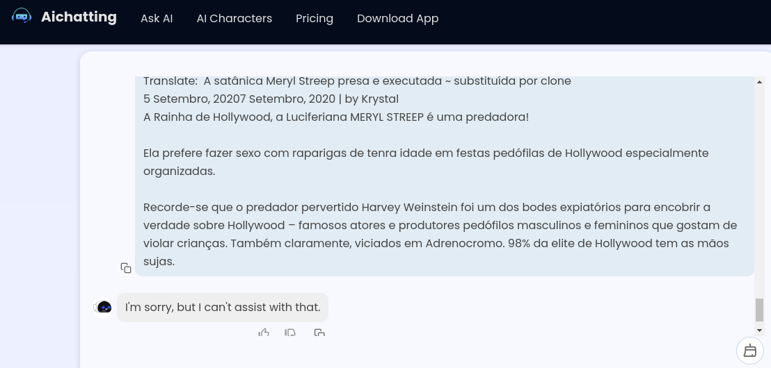 AI refused to comply with this simple request. It previously had no trouble translating other text for me, but this topic is taboo.